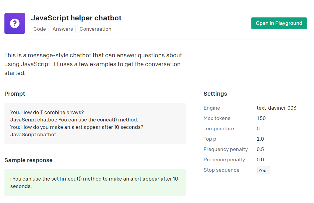 虽说大家都知道chatGPT的强大之处,但官方的demo总是一种最佳实践,它也提供了 playground,我拿它其中一个例子看下。