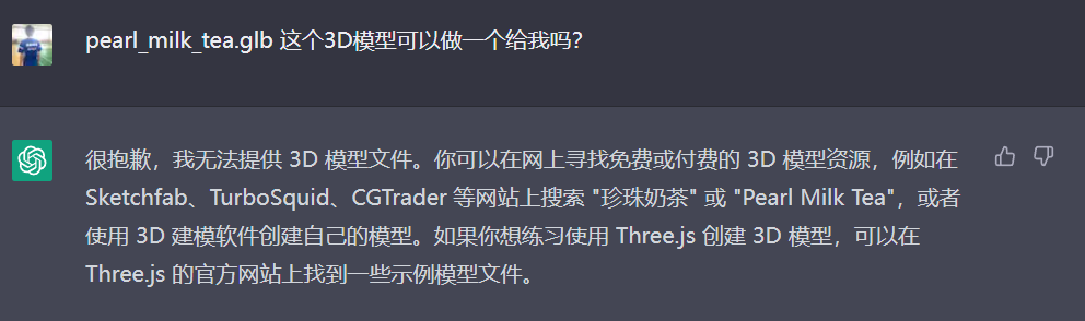 但我对于 3D 模型的生成,还是比较感兴趣的,有时候又不想自己写,那我自己又提了个 prompt。