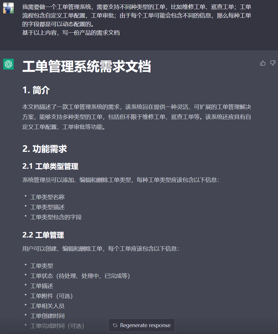 我们比较重要的工作内容是写需求和设计文档,这里我分享一个生成文案的 prompt。多图警告: