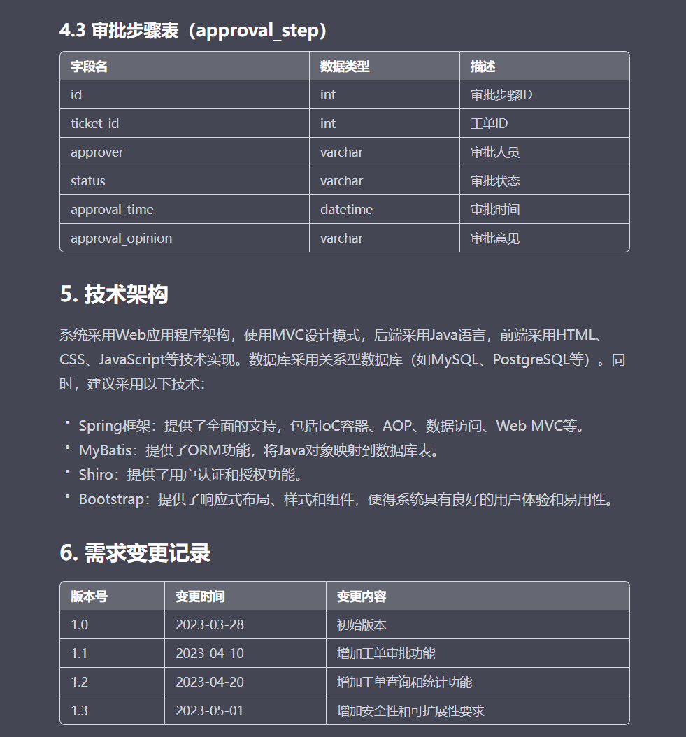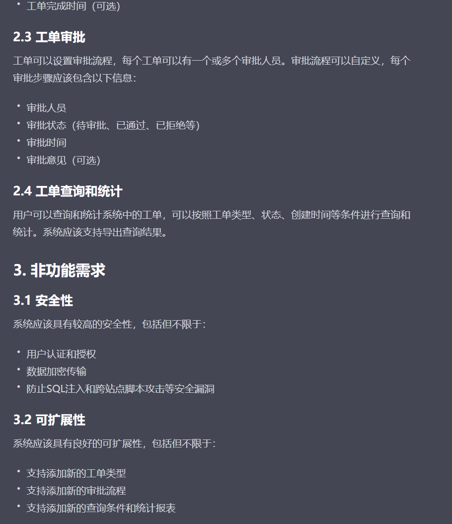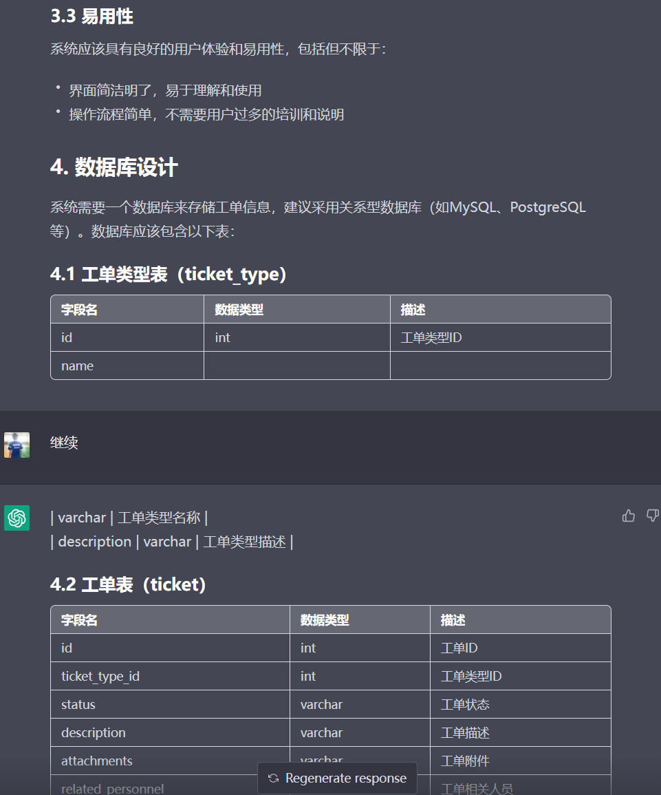 ok,虽然我问的点不是很多,但可以看得出来,它里面的内容已经实现了很好了。特别是 DFX 需求,以及表结构设计,让人眼前一亮。在问题的选择上我们的前置条件给的不够充足,但他们还是给了一些技术选型方案,这个是非常棒的。所以如果我们的前置prompt写的好,那么它的回答也会更好。