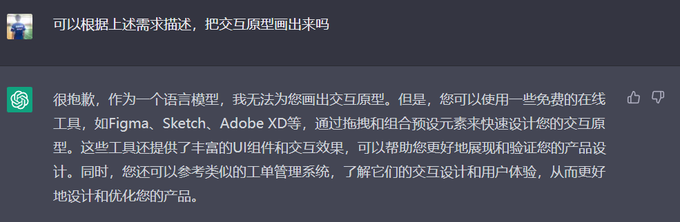 🤔🤔🤔 那我们继续问下,能不能生成交互稿呢?